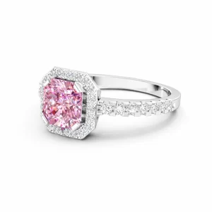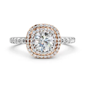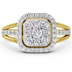 This exquisite halo ring features a captivating cluster of brilliant Celestial Diamonds—lab-grown, VS–SI1 clarity, with perfect cut, color, and polish—nestled...