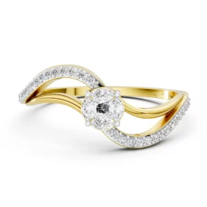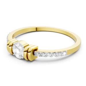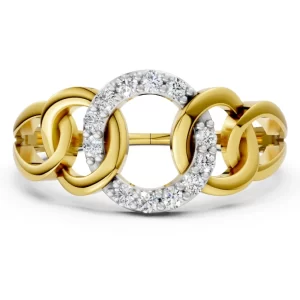A bold, architectural band crafted in 18K yellow gold, accented with three precision-set lab-grown Celestial Diamonds framed in white gold....