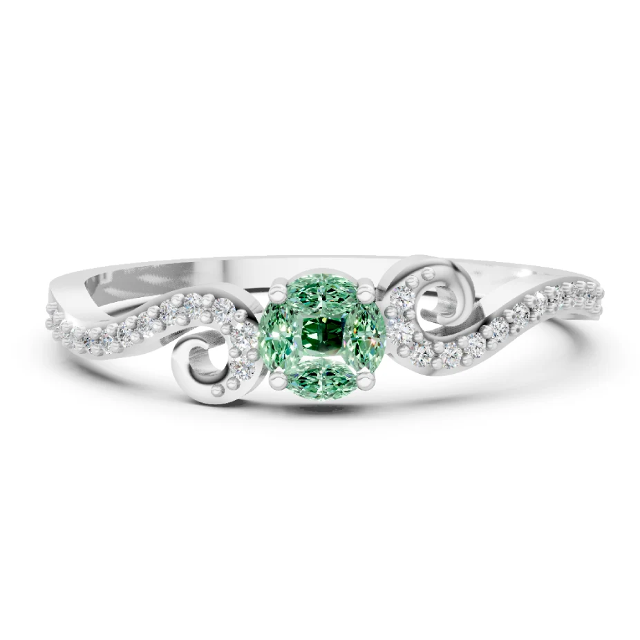 The Aurora Verdé diamond Ring from Aurium is a harmonious dance of elegance and color. Crafted in pure rhodium–polished 92.5 silver, its design showcases a mesmerizing mix of brilliant lab-grown Celestial Diamonds and lush emerald-green stones in striking princess and marquise cuts. Each stone is meticulously set to create a vivid contrast — the icy sparkle of diamonds against the deep, royal green of the center stones — making this ring an instant statement.