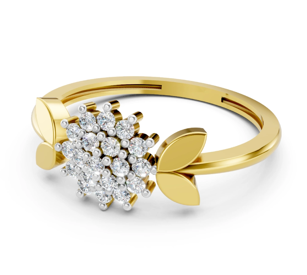 Adorn your fingers with a garden’s glow. The Blossom Radiance Ring celebrates nature in full bloom — with a central cluster of sparkling lab-grown Celestial Diamonds blossoming like a radiant flower, flanked by smooth, polished golden petals on either side. Crafted in rich 18k yellow gold, this ring is a timeless ode to grace and new beginnings.