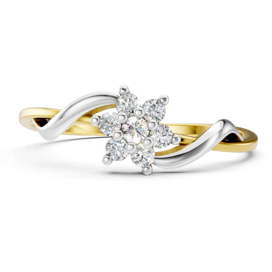 The Celeste Twist Diamond Ring is where elegance meets emotion. A radiant floral cluster of Celestial Diamonds blooms at the heart, cradled by a gentle wave of white gold that entwines seamlessly with rich yellow gold—symbolizing two souls intertwined in harmony. Crafted in pure 18K gold, this ring isn’t just jewelry—it’s poetry in precious metal.