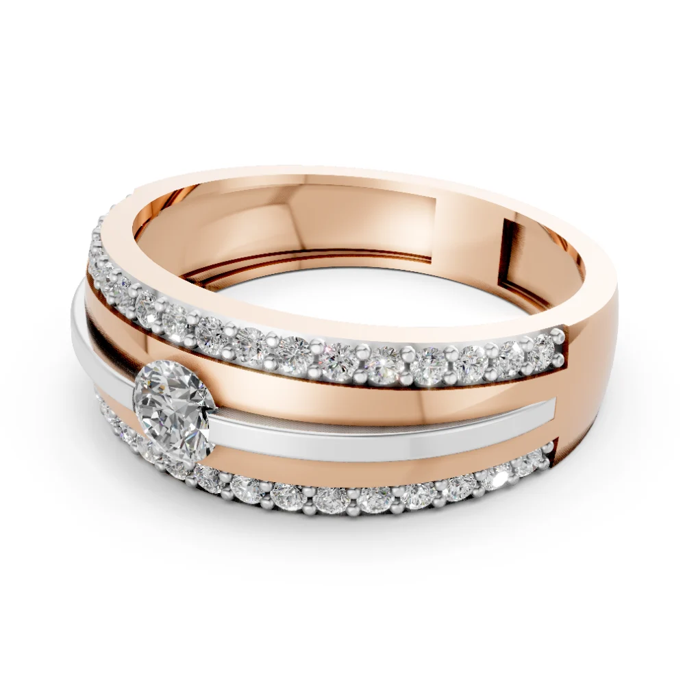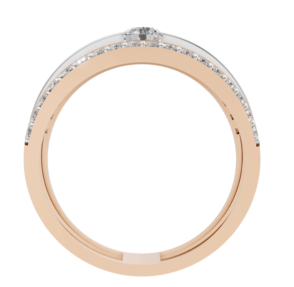 Crafted in rose gold with a sleek white gold inlay, this striking ring is entirely adorned with Celestial Diamonds — our signature lab-grown diamonds known for their advanced brilliance, exceptional cut, and unparalleled polish. From the mesmerizing center stone to each perfectly set melee lining the band, every diamond is a radiant expression of precision and purpose.