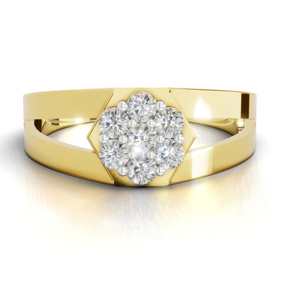 A graceful ode to nature’s artistry, Floraire Bloom captures the poetry of petals kissed by light. Set in radiant 18k yellow gold, this design features a cluster of seven Celestial Diamonds, arranged like a blooming flower, each facet catching light like morning dew. The gently split shank adds a modern elegance, balancing tradition with bold expression. Crafted for the dreamers, the romantics, and the quietly powerful.