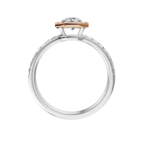 Along the band, a shimmering row of Celestial Diamonds—Aurium’s signature VS–SI1 brilliant-cut stones with flawless color and polish—adds a galaxy of sparkle, enhancing the center diamond’s glow with icy, star-like clarity.