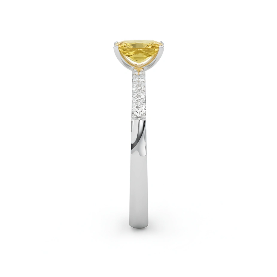The interplay of warm yellow flame against frosted white gold gives the Golden Aurora Ring a modern yet timeless identity, making it perfect for proposals, anniversaries, or as a statement of personal luxury.