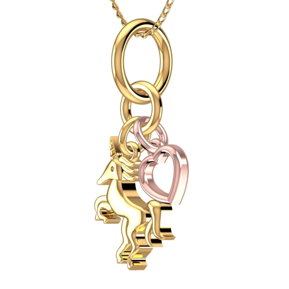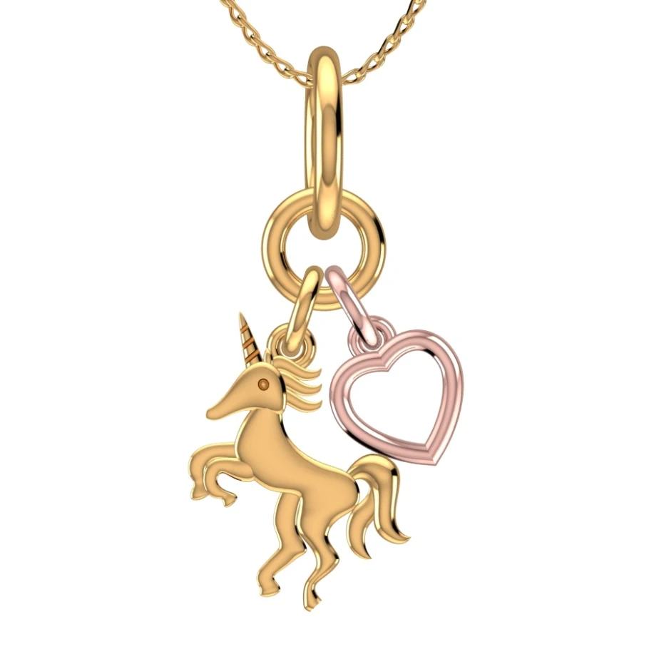 Where imagination meets emotion, Unicorn Heart pendant brings together the mythical grace of a unicorn in radiant 18K yellow gold and the softness of love symbolized by a rose gold open heart. A charming harmony of fantasy and affection, this pendant is a gentle reminder to always believe in magic—and in love.