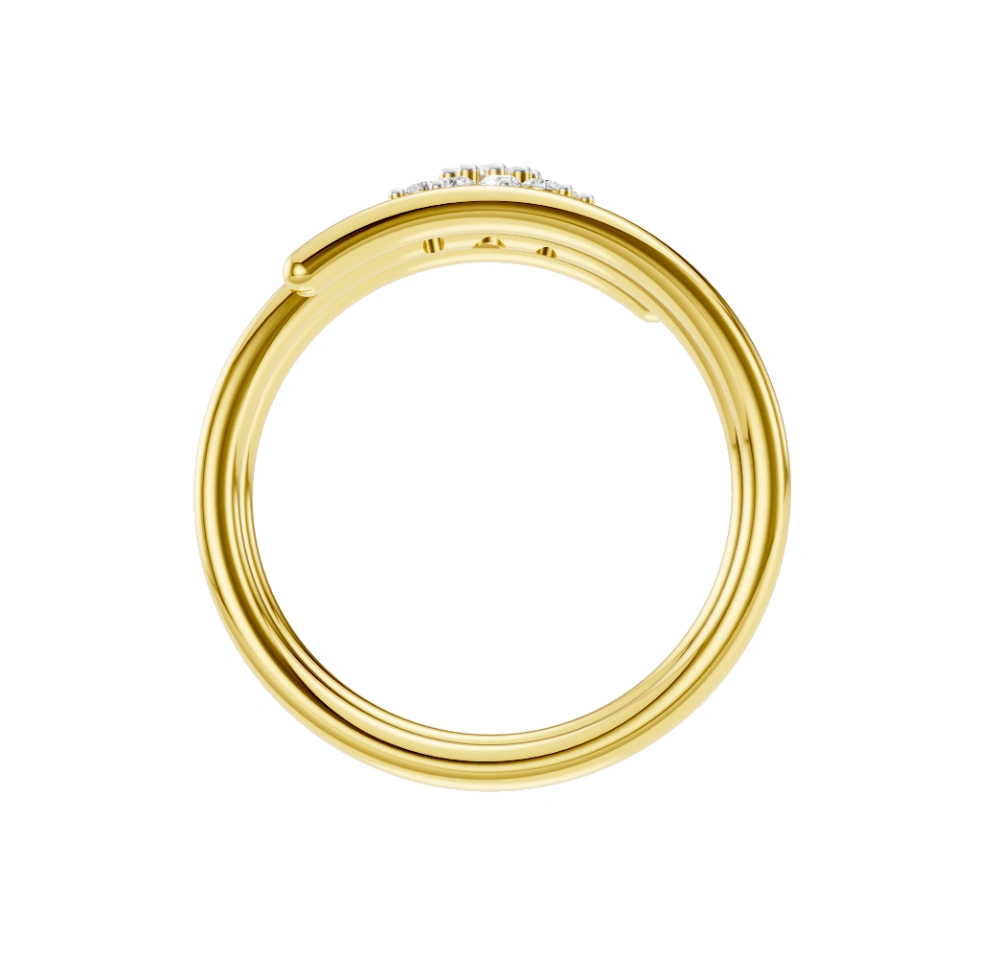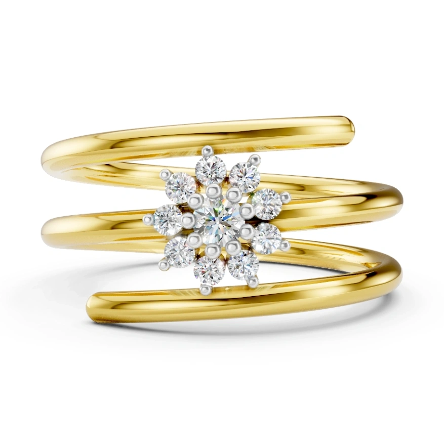 Where modern allure meets floral finesse — the LustreFlora Ring is a golden embrace of light and luxury. Handcrafted in radiant 18k gold, this wrap-around design cradles a luminous bloom of lab-grown Celestial Diamonds, sparkling in a perfect starburst. This is not just jewelry; it’s art that whispers elegance, crafted to bloom forever.