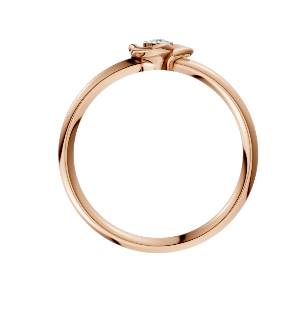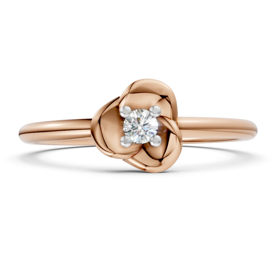 Delicately knotted like a vow etched in gold, this 18K rose gold ring blossoms with quiet emotion. Its sculpted petal design gently wraps around a single lab-grown Celestial Diamond — radiant, refined, and uniquely placed to represent you.