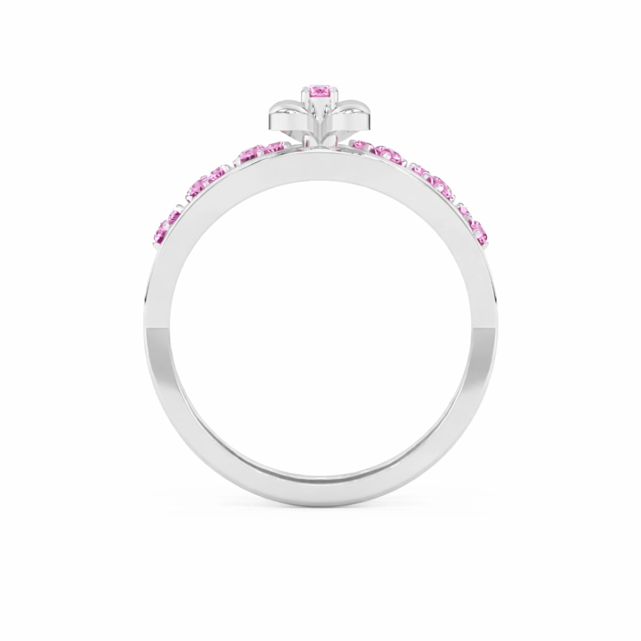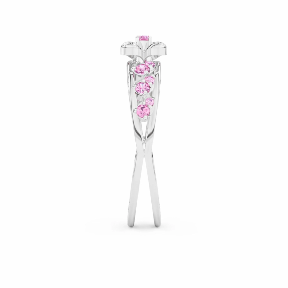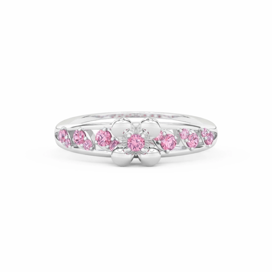 Gentle trails of matching Pink gemstones flow along the band, creating a soft, sparkling gradient that feels feminine and effortlessly graceful. Lightweight yet eye-catching, this ring is perfect for daily wear, gifting, or adding a touch of floral beauty to your collection.