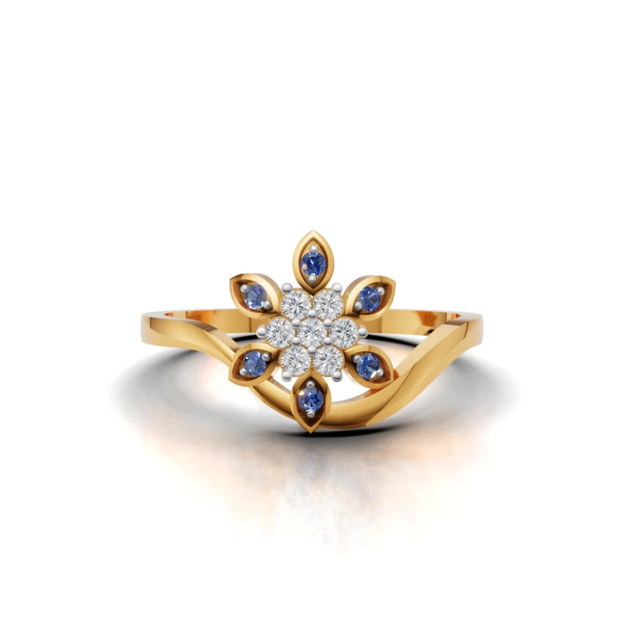 Delicate as a morning bloom kissed by dew, Sapphire Bloom unfurls in luminous 18K gold. Each golden petal holds a midnight-blue stone, encircling a heart of celestial lab-grown diamonds that shimmer like a constellation caught in sunlight. A flower that never fades — a timeless symbol of beauty that transcends seasons.