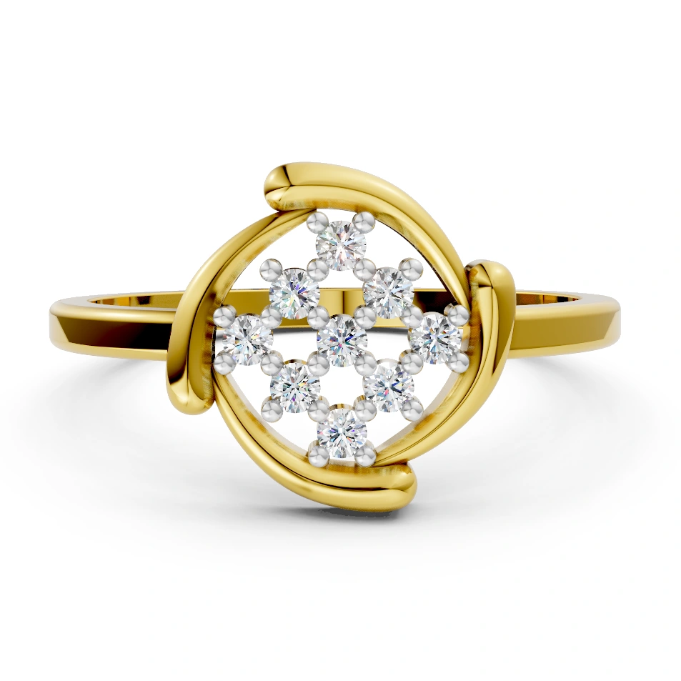 Soft golden swirls embrace the shimmering floral cluster, forming a halo that evokes angelic grace and timeless allure. Light yet captivating, this piece is an exquisite choice for those who believe in quiet statements that glow with meaning.
