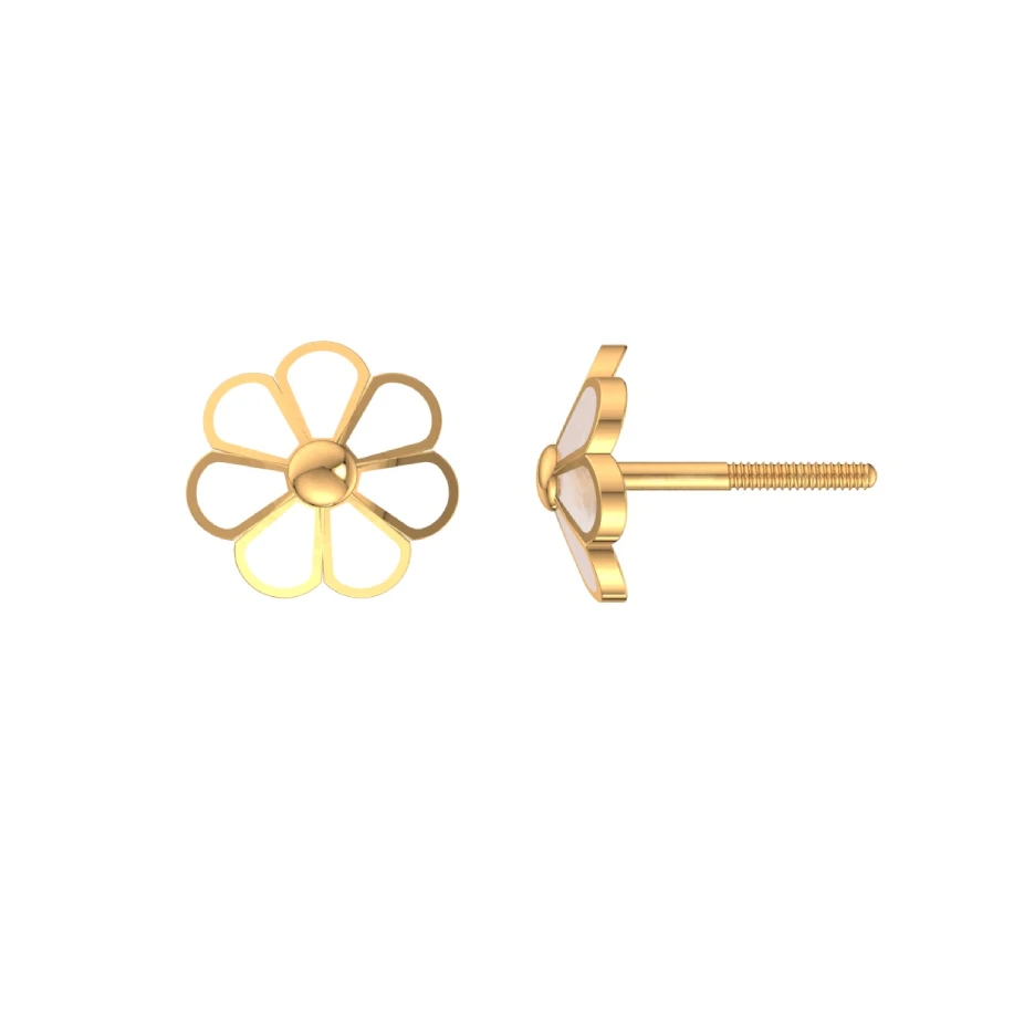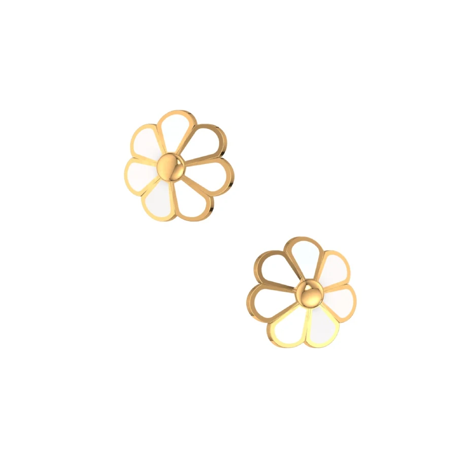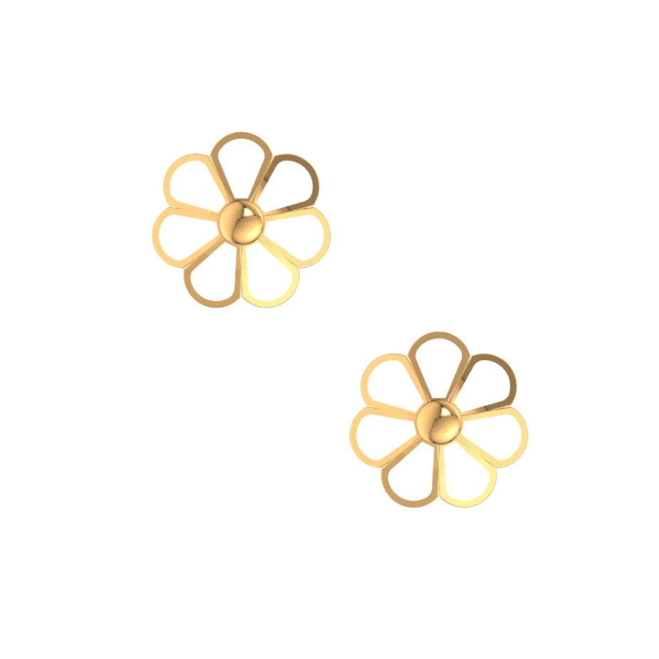 Sunlit Poise is a floral symphony in 18K gold. Inspired by the effortless beauty of sunlit blossoms, these dainty studs feature petal-like loops gently encircling a polished dome, evoking the feeling of golden hour serenity.