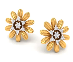Delicate as a dewdrop and luminous as the morning sun, these earrings are a graceful fusion of tradition and elegance. Crafted in radiant 18k yellow gold and accented with a sleek white gold curve, each stud is adorned with a cascade of Celestial Diamonds—Aurium’s signature lab-grown melee diamonds—graded VS–SI1 minimum with perfect cut, color, and polish. A brilliant central floral motif floats inside the teardrop silhouette, adding charm and character to this lightweight design.