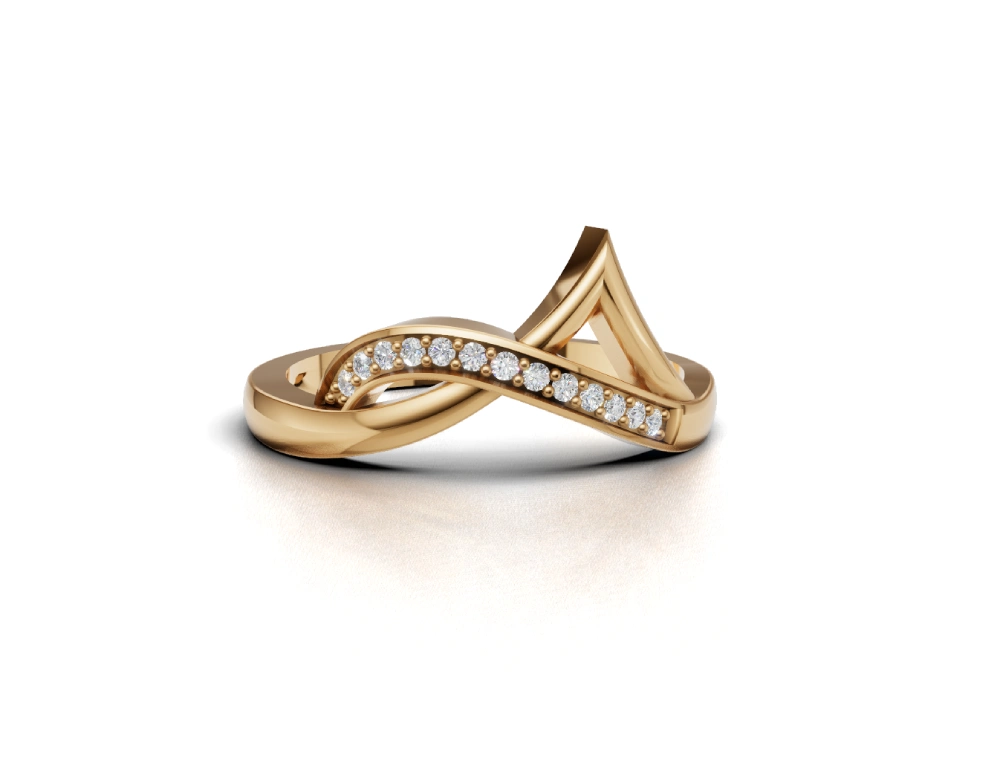 Where grace converges with bold intent — Velour Crest is a celebration of elegance in motion. Sculpted in 18k gold, this ring unfurls with a fluid crossover, one arm lined with a trail of lab-grown Celestial Diamonds that glimmer like whispered promises. The folded peak rises like a cresting wave, symbolizing strength emerging from softness.