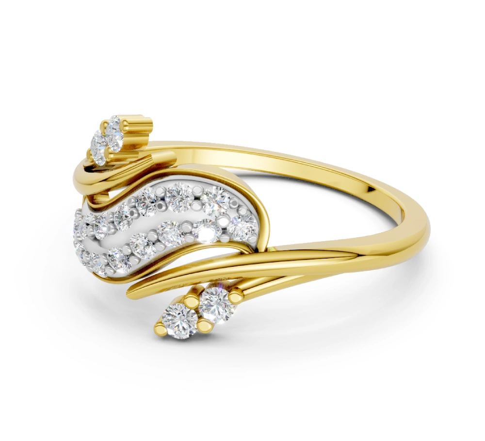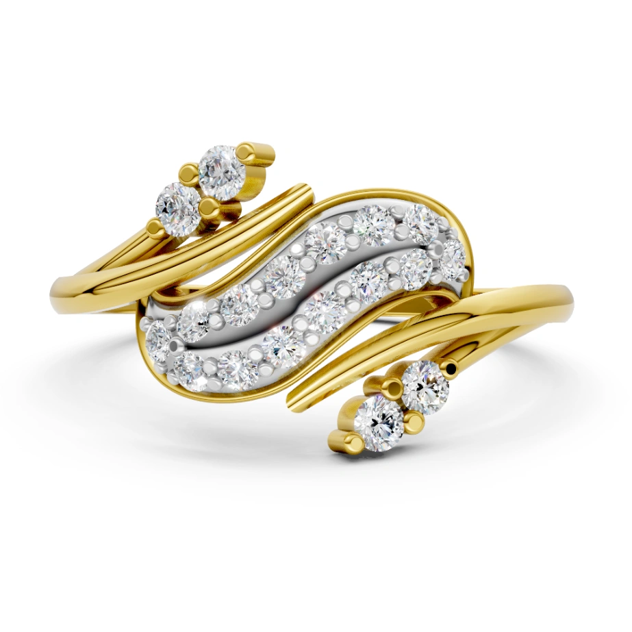 Where gold flows like liquid sunlight and diamonds shimmer like dew on petals, this 18K beauty captures motion in stillness. Intricate twin strands wrap around a central wave, encrusted with brilliant Celestial Diamonds — our signature lab-grown VS–SI1 stones, cut to perfection.