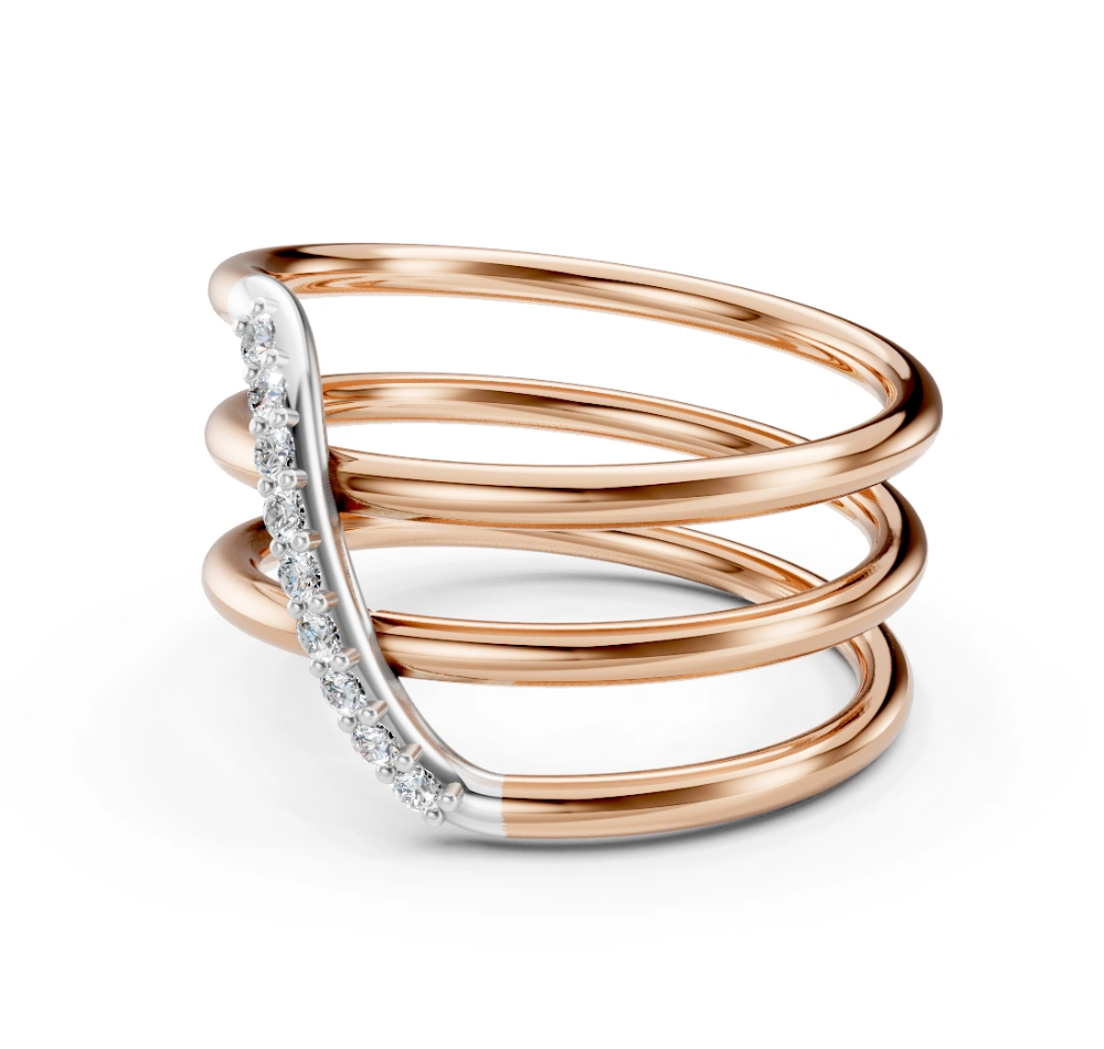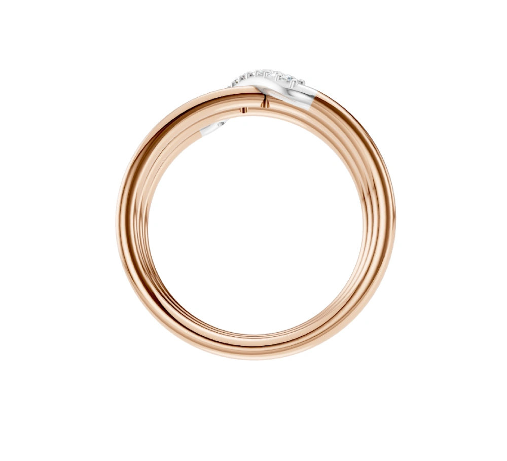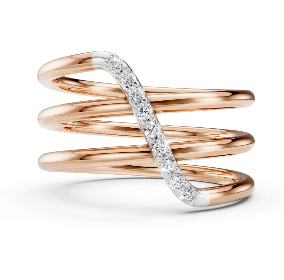 Crafted in radiant 18k rose gold, this sculptural masterpiece dances around your finger like waves of light in motion. Each smooth arc of gold flows into the next, culminating in a sleek diagonal band of Celestial Diamonds — our lab-grown diamonds, meticulously handset to illuminate every gesture. Bold yet fluid, playful yet poised, this ring is a celebration of contrast and movement. Aurium isn’t just jewelry — it’s art you wear.