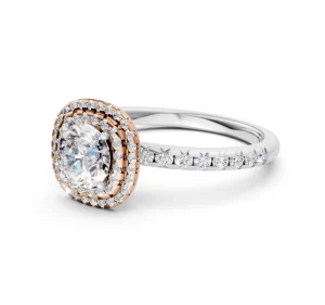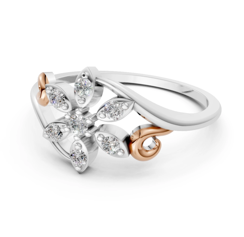 A floral fantasy cast in dual tones, Zerena blooms with elegance and grace. Sculpted in luminous 18K white gold with tender rose gold accents, this ring captures the fleeting beauty of a flower in full bloom.